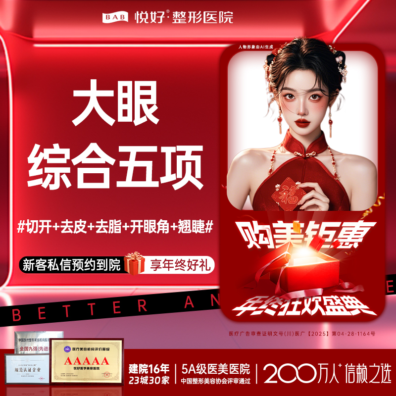 【眼综合5项】全包价新客专享 切开+去皮+去脂+开内眼角+翘睫 /大眼睛 眼综合