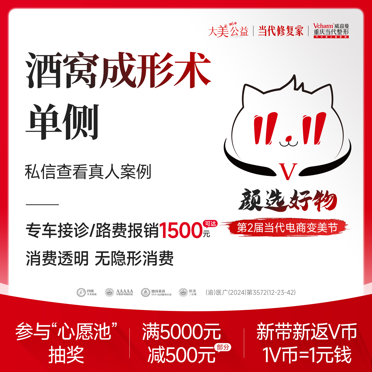 【1500/双侧】单侧 酒窝/梨涡成形术 酒窝成形术 梨涡成形术