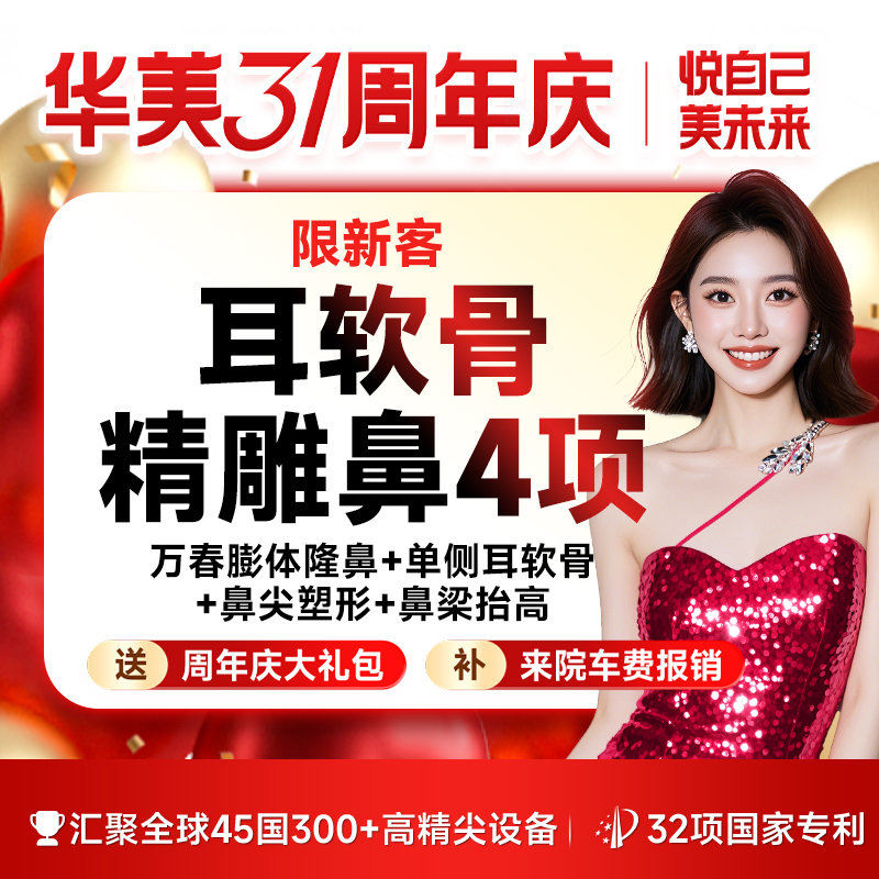 【隆鼻】万春膨体隆鼻+单侧耳软骨+鼻尖塑形+鼻梁抬高 假体隆鼻