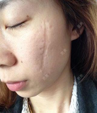 这样的疤痕能祛除吗?小时候吃饭时摔跤碗碎片割伤的、已经有20年了。前两年做过激光手术前后4次,颜色是淡了,但是疤痕还是在,有什么办法祛除嚒?